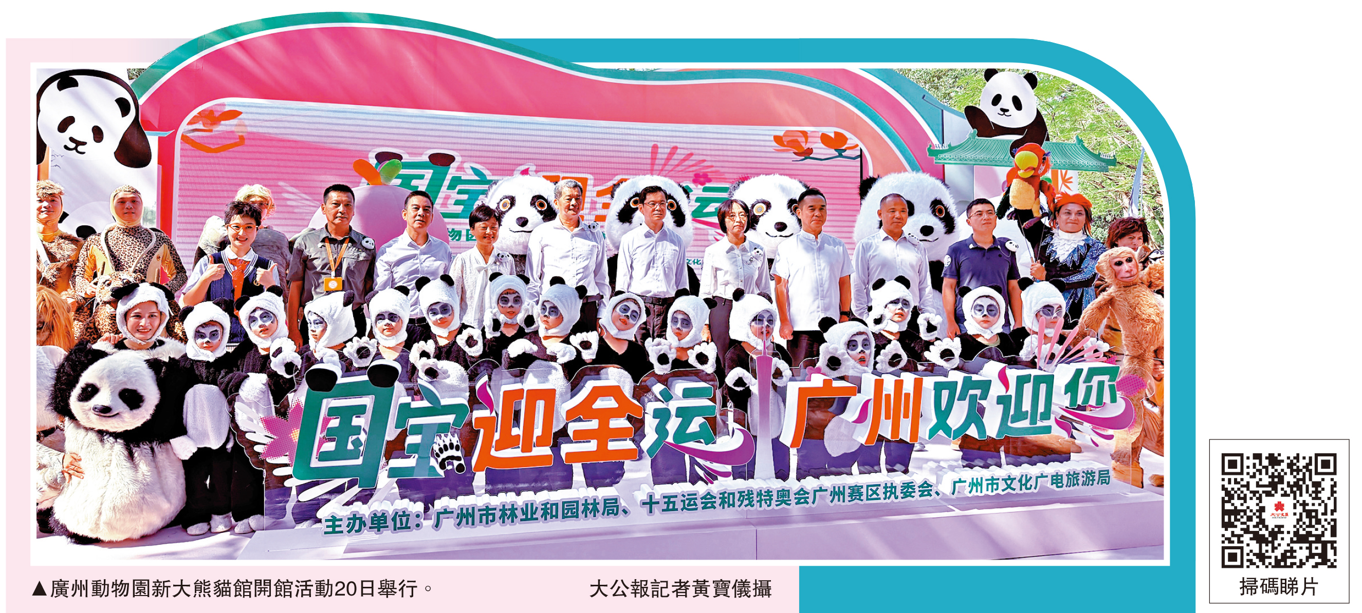 在第十五屆全國運動會開幕倒計時20天之際,「國寶迎全運」廣州動物園(下稱「廣動」)新大熊貓館開館活動20日舉行。觀眾只需購買一張20元人民幣的門票,即可一次邂逅大熊貓新成員「久久」、「友友」和老朋友「星一」、「雅一」組成的「熊貓天團」,開啟一場「可玩、可學、可賞」的zoo walk,享受「廣州大熊貓最平5蚊一隻」的快樂,感受廣州生態保護與體育盛事的交融魅力。\大公報記者 黃寶儀、帥誠廣州報道