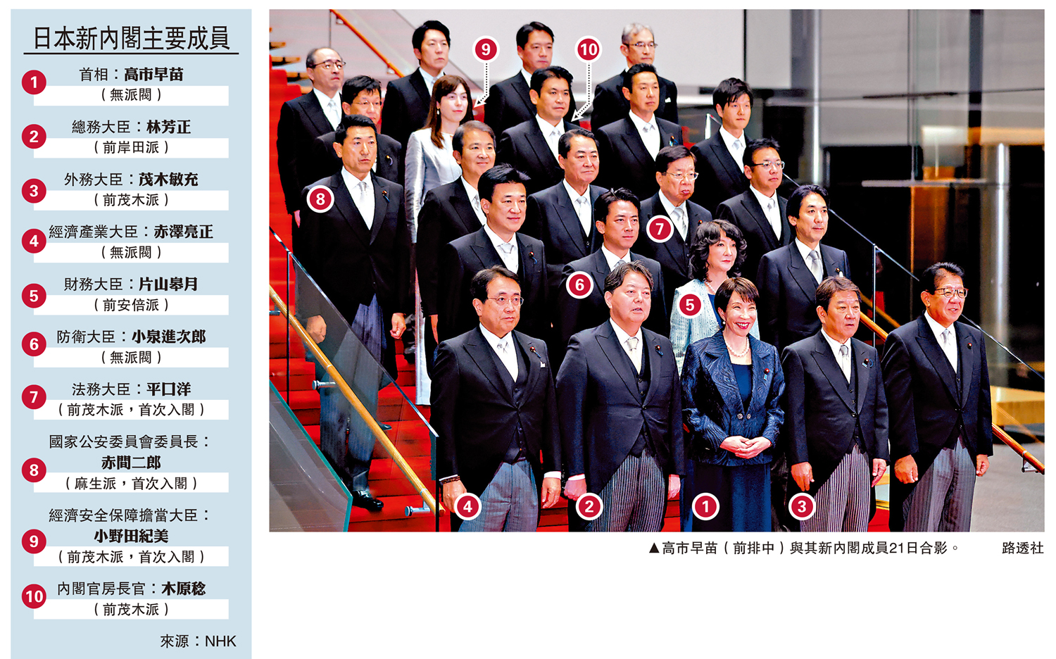 日本自民黨總裁高市早苗21日在國會首相指名選舉中當選日本第104屆首相,也是日本首位女首相。當晚,高市組建新內閣,標誌着由自民黨和日本維新會組成的執政聯盟正式啟動。日媒注意到,新內閣包括自民黨內各派人士,表明高市試圖兼顧黨內派閥平衡。儘管如此,高市仍面臨朝小野大、新執政聯盟不夠穩固等多重挑戰,其右翼立場亦可能影響日本外交政策。