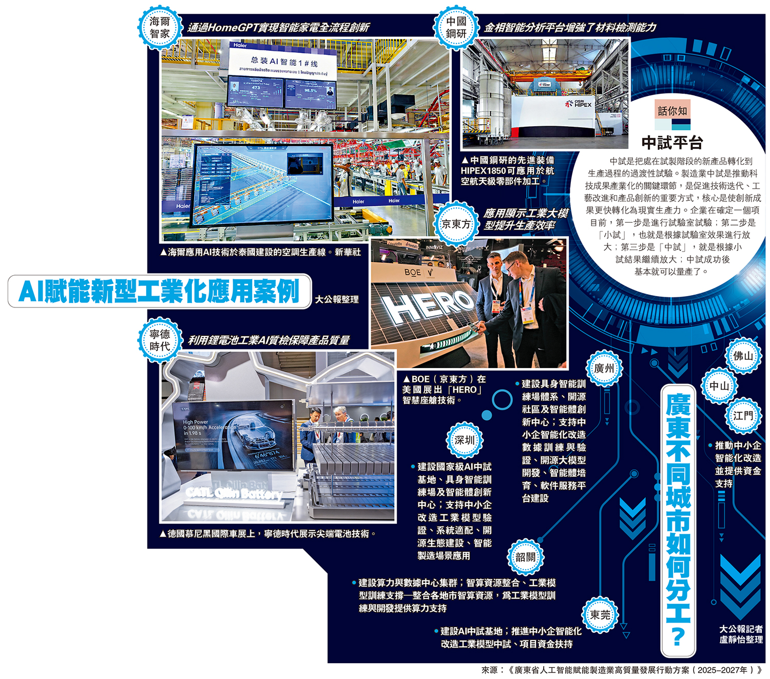 廣東省人民政府日前制定出台《廣東省人工智能賦能製造業高質量發展行動方案(2025-2027年)》(下稱方案),圍繞強化關鍵供給、促進應用推廣等方面出台了16條政策措施,提出加快打造具有全球影響力的「人工智能+製造業」融合發展示範區。