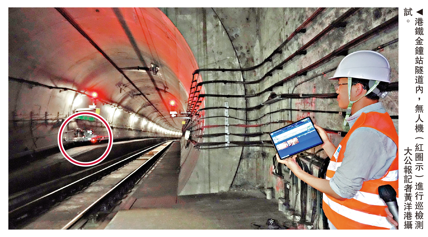 為配合低空經濟發展,同時探索無人機在鐵路領域的創新應用,港鐵公司於今年6月起,在鐵路隧道內測試應用超視距飛行無人機,將隧道巡檢時間由傳統人手的每公里30分鐘,壓縮至10分鐘內完成,亦可全自動放置工程紅閃燈,較人手速度快約一倍,大幅提升工作效率。