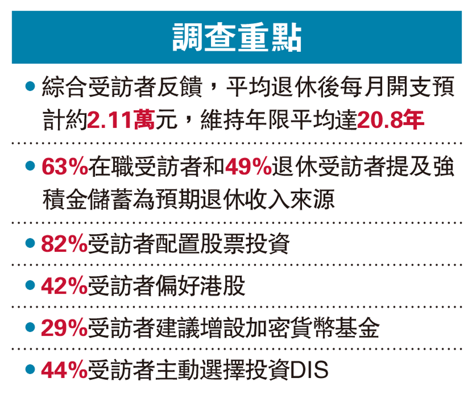 退休平均每月開支預算2.1萬