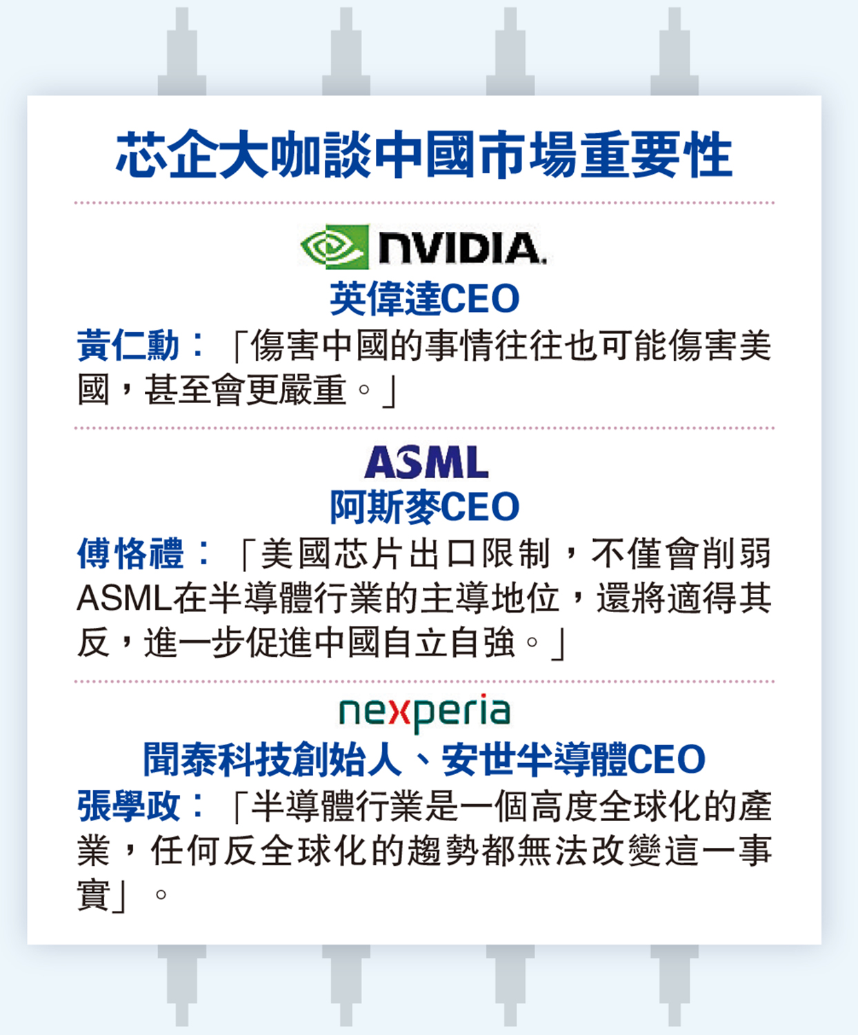 聞泰科技創始人、安世半導體CEO張學政:「半導體行業是一個高度全球化的產業,任何反全球化的趨勢都無法改變這一事實」。