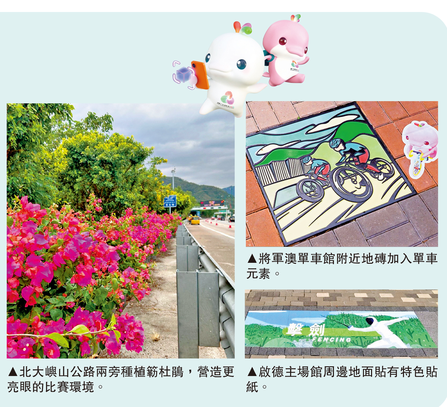 跨境賽事以外,陳美寶表示,香港賽區將承辦擊劍、場地自行車、高爾夫球、手球(男子)、七人制橄欖球、沙灘排球、籃球(男子22歲以下組)、鐵人三項8個競賽項目及保齡球(群眾賽事活動)。路政署在多個賽事場地周邊進行美化工程,讓各觀眾未入場先興奮,為入場吶喊做定熱身。
