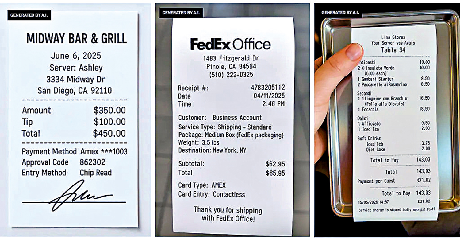 【大公報訊】據《金融時報》報道:隨着人工智能(AI)圖像生成模型的發展,越來越多人開始利用該工具生成虛假收據,企圖騙過企業獲取資金。