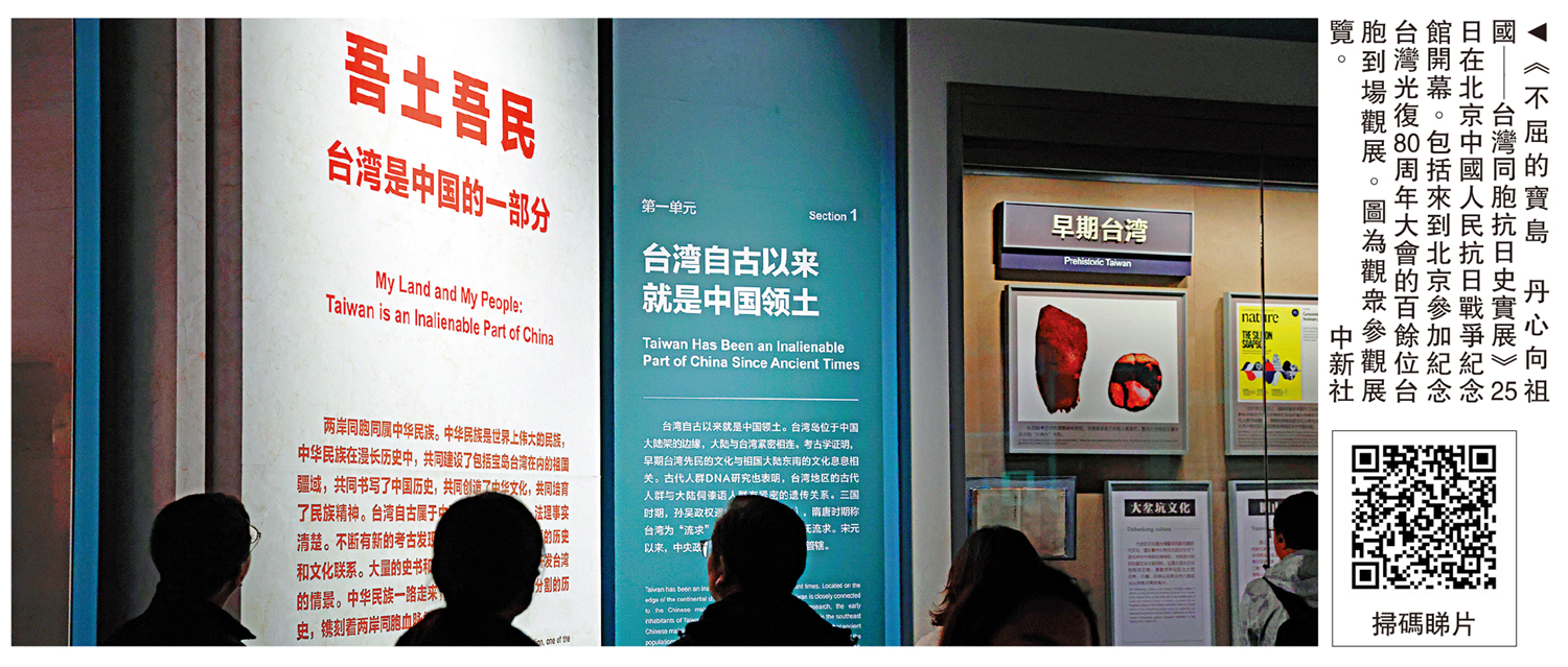 全國台聯黨組書記紀斌致辭表示,今年是中國人民抗日戰爭暨世界反法西斯戰爭勝利80周年,也是台灣光復80周年。我們迎來了全國人大常委會根據憲法作出決定,以法律形式將10月25日設立為台灣光復紀念日。台灣光復是中國政府恢復對台灣行使主權的重要鐵證,是台灣作為中國一部分的歷史事實和法理鏈條的重要一環。民進黨及其政客無論怎樣扭曲抗戰歷史真相,否定抗戰勝利成果,淡化否認台灣光復的歷史意義,勾連外部勢力鼓噪「台灣地位未定」謬論,都扭曲不了、撼動不了台灣屬於中國一部分的歷史和法理事實。