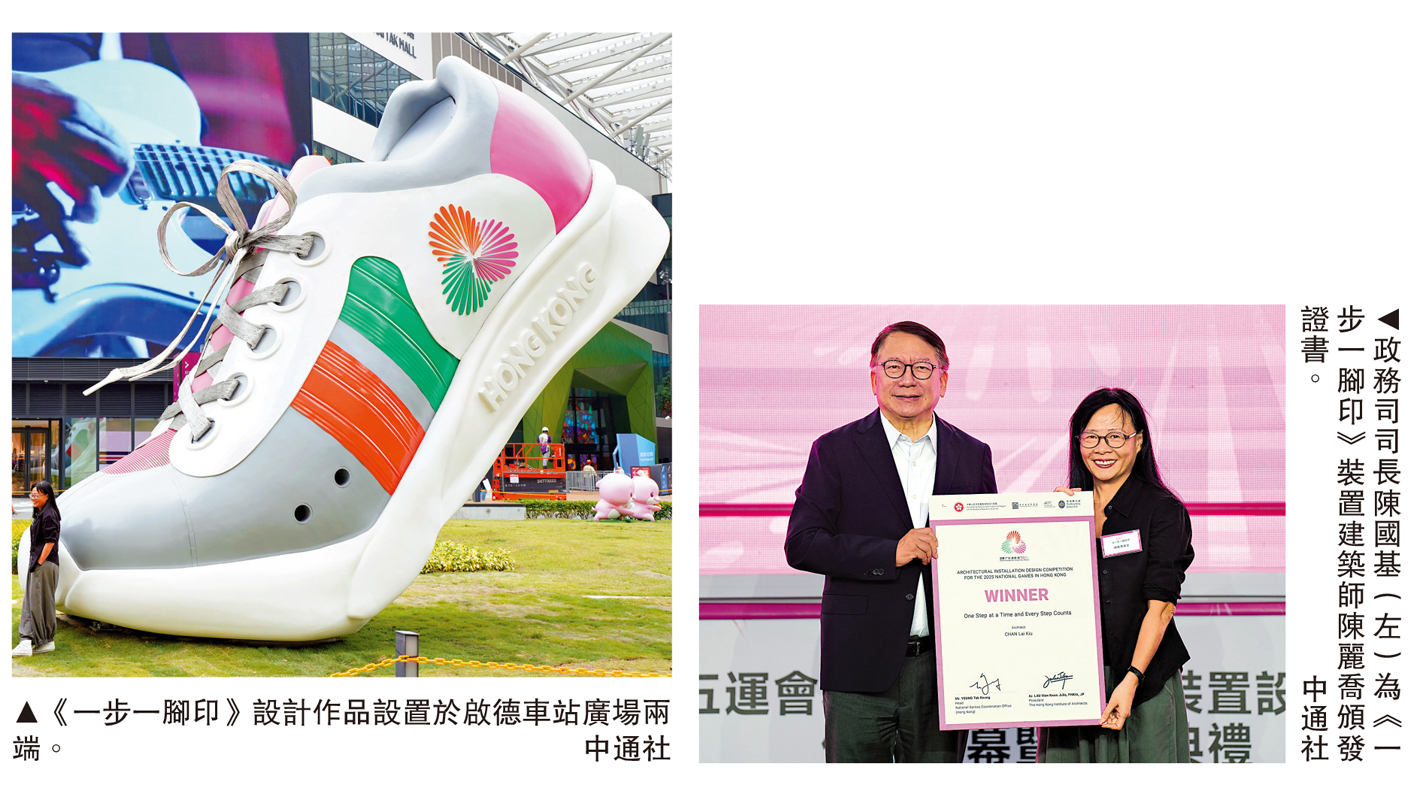 【大公報訊】全運會和殘特奧會建築裝置設計比賽作品揭幕暨頒獎典禮28日成功舉辦,比賽共徵集超過60份參賽作品,最終《光·花·聚》及《一步一腳印》兩部作品脫穎而出,將分別擺放在中西區海濱長廊中環段及啟德車站廣場。