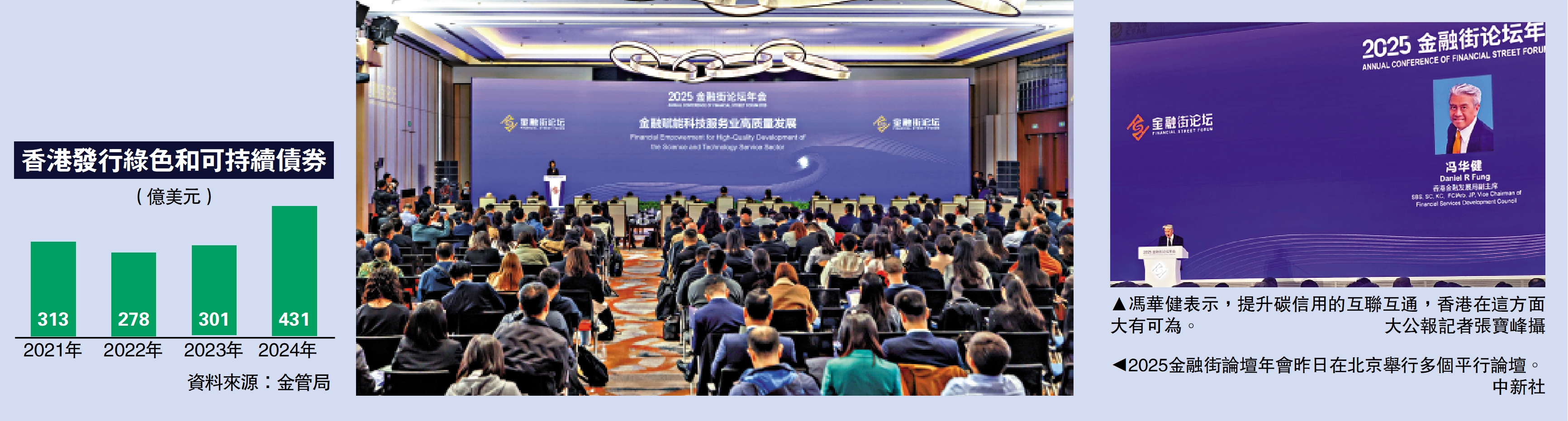 2025金融街論壇年會之綠色金融平行論壇昨日在北京舉行。中外嘉賓圍繞綠色金融支持全球低碳轉型的創新路徑,以及國際綠色領域合作的機遇挑戰等話題進行深入交流。香港金融發展局副主席馮華健表示,加強香港與內地碳市場的互聯互通,不僅助推內地碳市場蓬勃發展,也為香港帶來更廣闊的發展機遇,更助力香港從傳統的「超級聯繫人」發展為全方位的「超級增值人」。\大公報記者 張寶峰北京報道