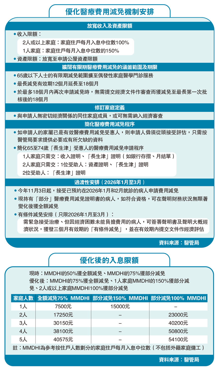 優化醫療費用減免機制安排、優化後的入息限額
