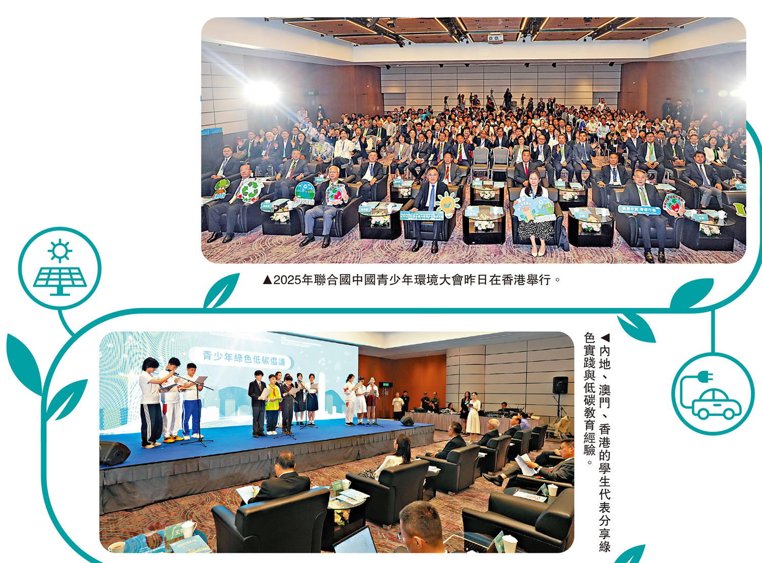 「美麗中國,零碳行動」2025年聯合國中國青少年環境大會昨日在灣仔會議展覽中心舉辦。大會圍繞氣候主題,立足粵港澳大灣區,通過主旨發言、實踐分享、成果展示等系列活動,搭建學習與交流平台,幫助青少年了解應對氣候變化方面的科學信息、鼓勵青少年參與環境議題、激勵並引導青少年採取氣候行動,倡導綠色、低碳、可持續的生活方式,為全球氣候治理與環境治理貢獻中國青少年的力量。\大公報記者 易曉彤(文) 林少權(圖)