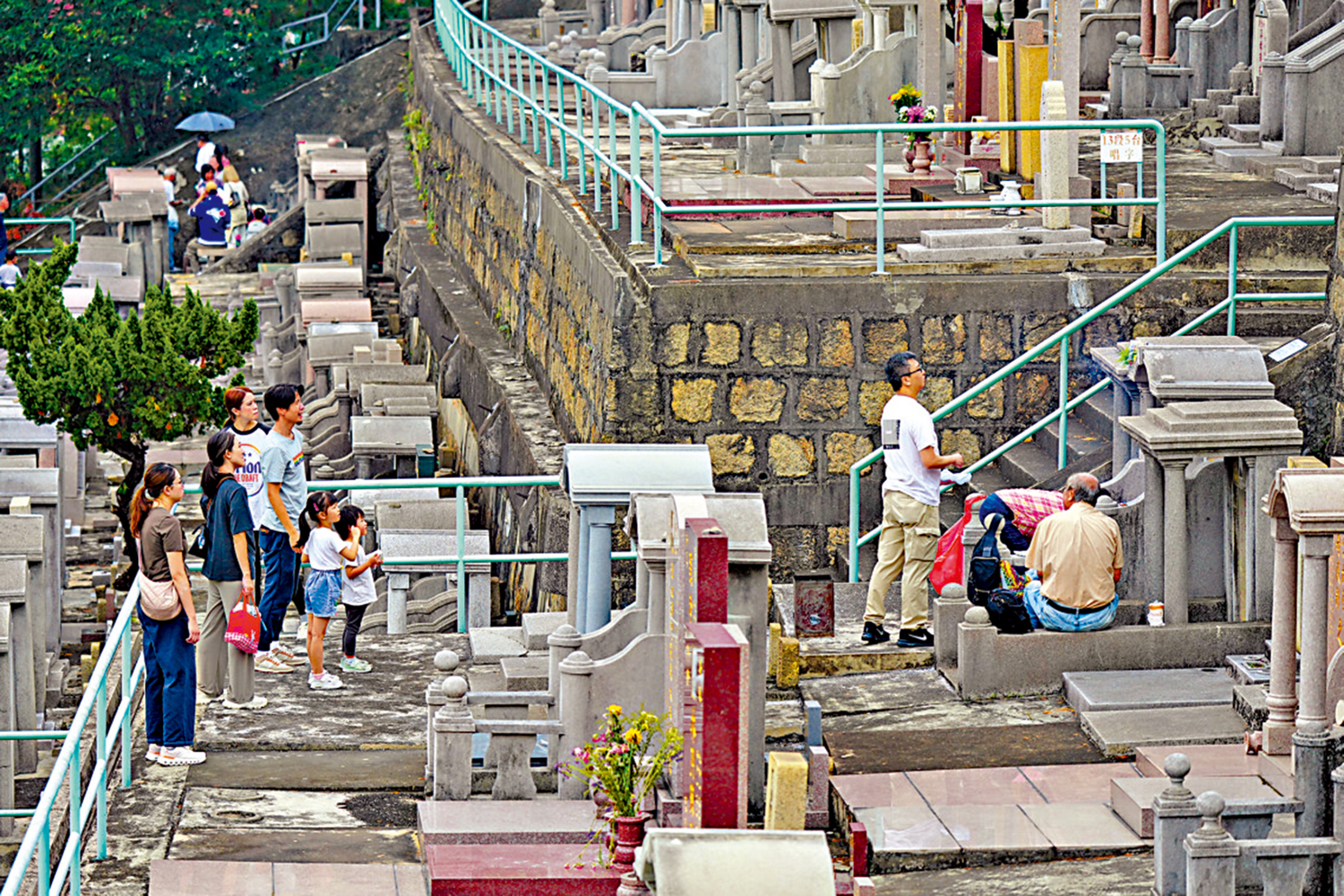 昨日重陽節,大批市民購買香燭、鮮花、水果燒肉等,前往墳場掃墓祭祖。在鑽石山墳場,有警員實施人流和交通管制,安排掃墓人士分批過馬路再進場;柴灣歌連臣角墳場人流同樣絡繹不絕,不少市民一早上山掃墓,因歌連臣角道往靈灰閣方向封路,有小巴司機早上接獲通知,不能駛入第一、二期靈灰閣。