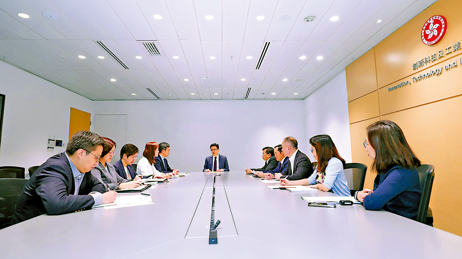 出席會議的人士包括創科局副局長張曼莉、常任秘書長蔡傑銘、數字政策專員黃志光、創新科技署署長李國彬、工業專員葛明、副秘書長鄭嘉慧和周可喬,以及政治助理廖添誠等。孫東表示,「十五五」規劃明確支持香港建設國際創新科技中心,顯示了國家對於香港在未來科技強國建設中發揮更積極作用的期盼和信心,亦體現了國家對香港特區政府致力創科發展的肯定。