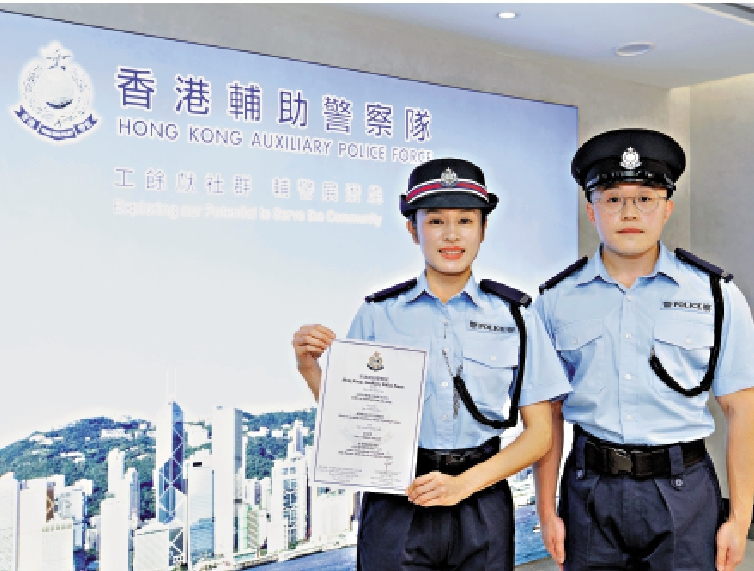 【大公報訊】記者余風報道:新一屆香港輔助警察隊今日(11月1日)順利完成為期33星期的訓練並舉行結業會操,正式投身前線警務工作。其中,中學助理校長冼嘉豪與機電工程署工程師郭倩明憑藉優異表現脫穎而出,郭倩明更一舉斬獲銀笛獎及全期最佳學術獎第一名。立法會選舉將在12月7日投票,兩人亦不忘呼籲市民投選做實事的議員。冼嘉豪表示身為老師,將會向學生講解立法會選舉投票的意義;身為公務員的郭倩明,亦會投票支持立法會選舉。