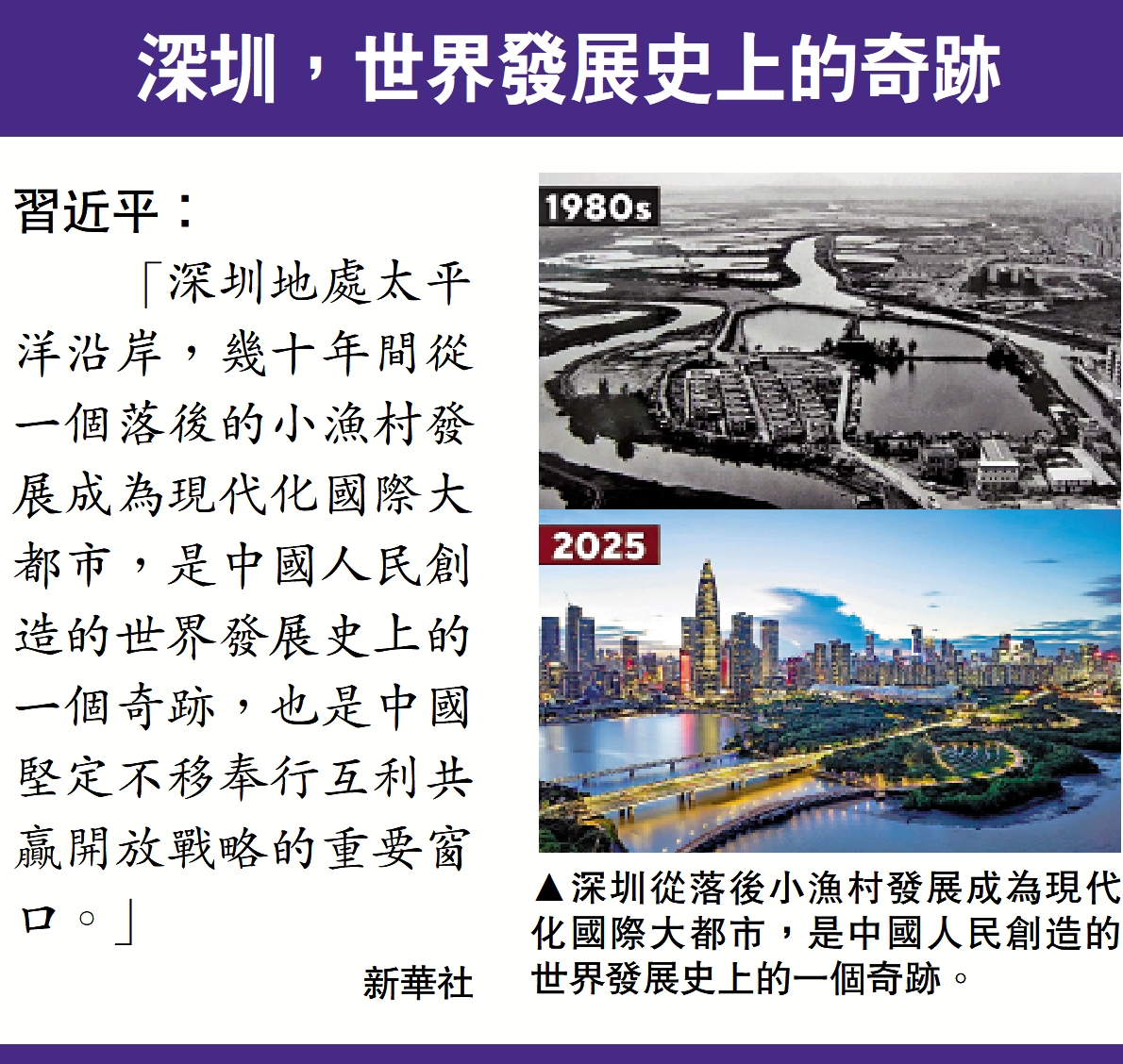 圖:深圳從落後小漁村發展成為現代化國際大都市,是中國人民創造的世界發展史上的一個奇跡。