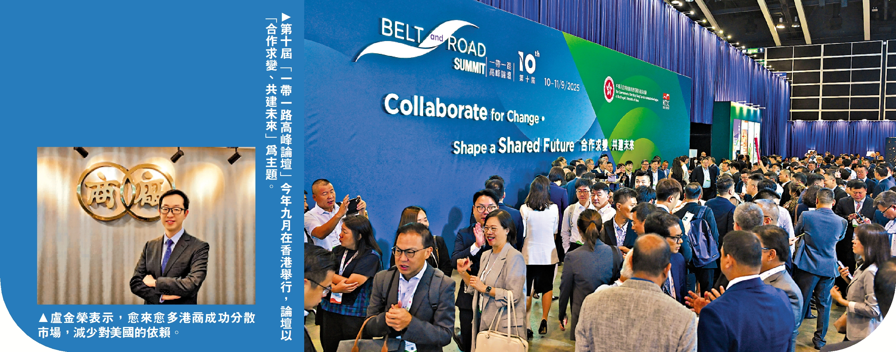 美國近年發動貿易戰,關稅威嚇曾令市場擔憂拖累本港出口,但今年首九個月,香港出口上升13.4%,表現勝預期。廠商會會長盧金榮表示,面對美國的關稅大棒,港商近年積極應戰,越來越顯得遊刃有餘。再加上自從「一帶一路」倡議於2013年提出來,港商全力響應,開拓相關市場,亦見一定效果,抵消部分關稅戰的負面影響。