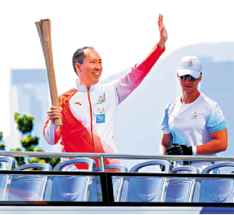 【大公報訊】第十五屆全國運動會香港賽區火炬接力傳遞活動昨早舉行。火炬由政府總部出發,橫跨維多利亞港,最終抵達啟德體育園中央廣場。第38棒火炬手、信和集團主席黃永光形容,能夠擔任全運會火炬手,是莫大的榮譽,衷心感謝中央政府和香港特區政府給予他這個寶貴機會,也感謝組委會成功籌辦這場盛事。