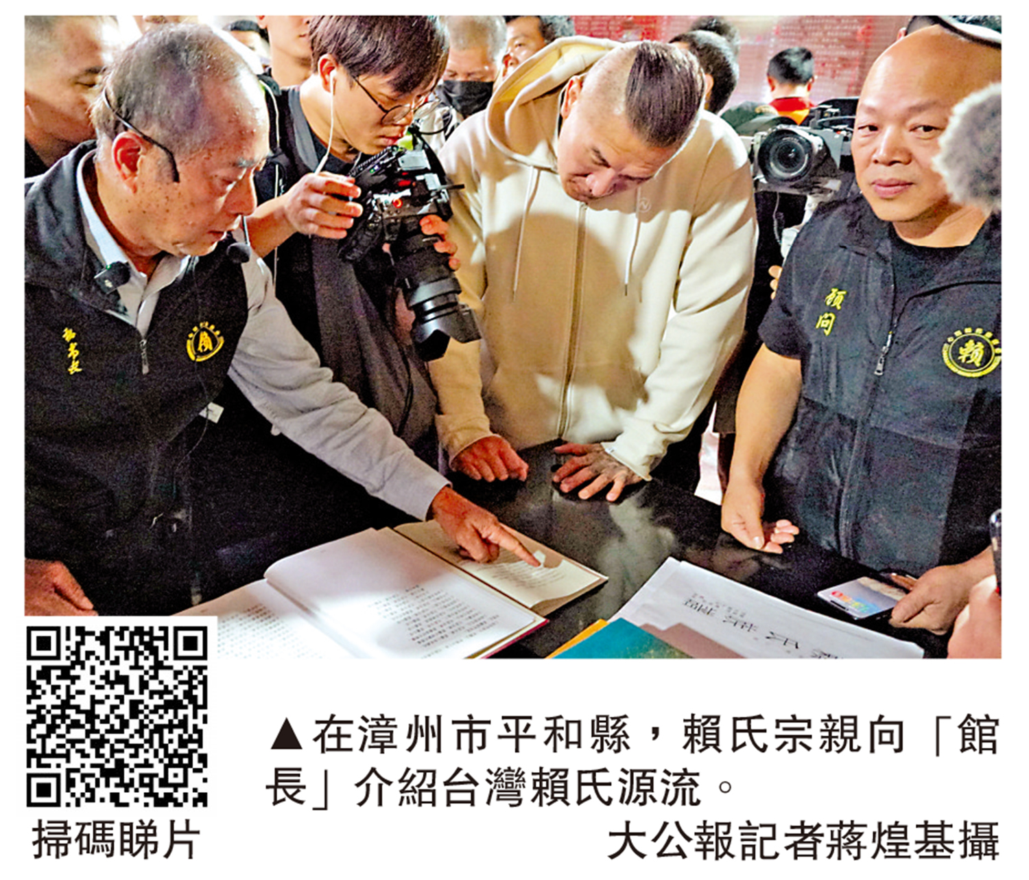 【大公報訊】記者蔣煌基漳州報道:台灣網紅「館長」陳之漢3日到訪福建省漳州市平和縣阪仔鎮心田村,替奉行「台獨」路線的台灣地區現任領導人賴清德「尋根」。