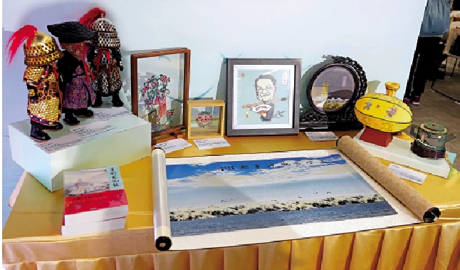《香江潮湧·俠藝情緣》展區展出多組非遺文化作品,包括海寧皮影《角》茶掛系列及《薛丁山與樊梨花》等主題皮影戲作品。其中,《薛丁山與樊梨花》以傳統皮影道具「燈綵牆門」為背景,呈現喜慶熱鬧的拜堂場景。