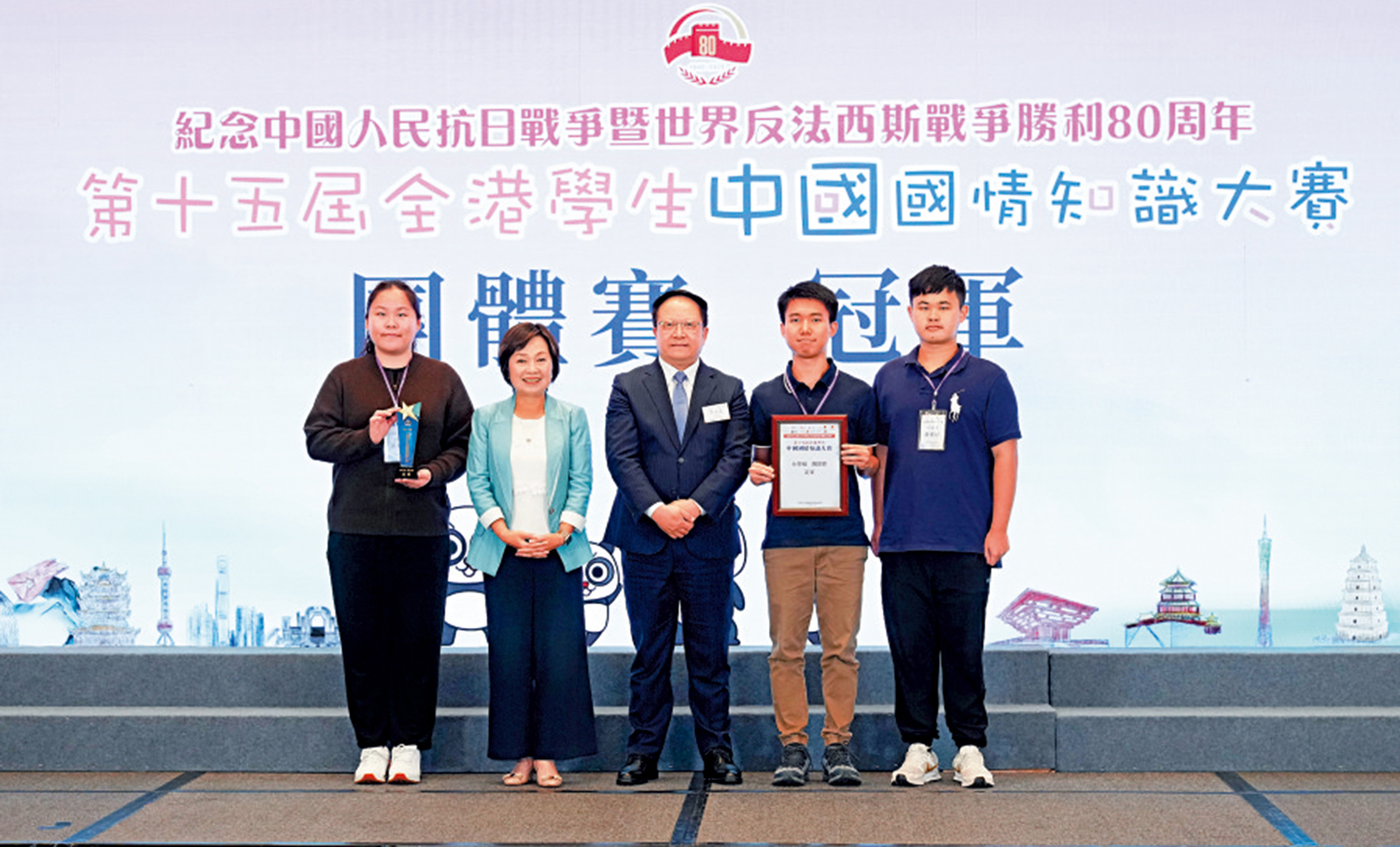 本屆「全港學生中國國情知識大賽」誕生一位個人賽及團體賽「雙料冠軍」,來自香港理工大學的翁國樺表示,自己已是第三年參賽,今次終於將冠軍獎盃帶回家,感到十分開心。他希望鼓勵身邊朋友組隊參加,一起複習,在共同備戰的過程中共同進步、互相學習。他坦言奪冠並不容易,回憶團體賽初段在必答題失手,之後進入搶答題亦因情緒波動、思路不清,一度再出錯,「所幸在後段逐步穩定心態,接連答對了好幾題,奪回關鍵分數。」