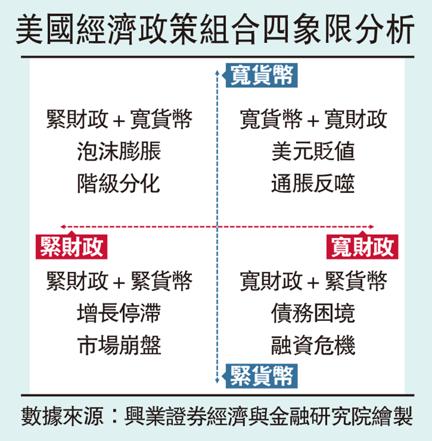 若實施「寬財政+寬貨幣」,則面臨通脹上升和美元貶值的壓力。雖然契合特朗普政府短期刺激經濟與就業的政策傾向,但在當前財政與貨幣環境已處寬鬆周期的背景下,持續實施「雙寬」政策將加劇中長期通脹壓力,並對美元信用與國際儲備貨幣地位構成持續性挑戰。