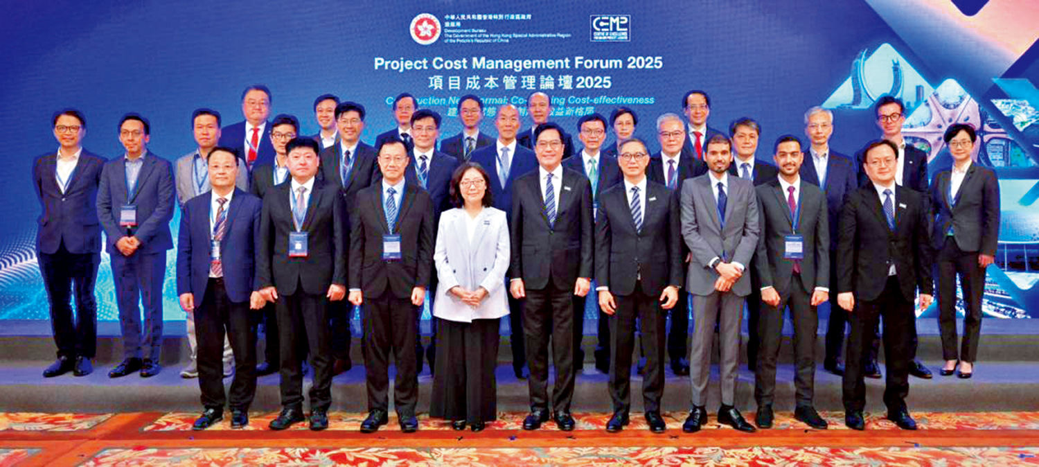論壇以「建築新常態:共創成本效益新格局」為主題,探討如何透過優化採購策略與應用創新技術,加強建造項目的成本管理,提升成本效益。逾400名香港、內地、新加坡、卡塔爾和英國等地的政府部門、工程顧問公司、承建商和專業機構代表,以線上線下方式參與。