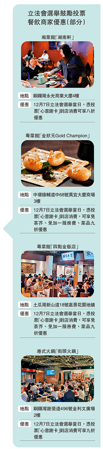 優惠:12月7日立法會選舉當日,憑投票「心意謝卡」到店消費可享八折優惠