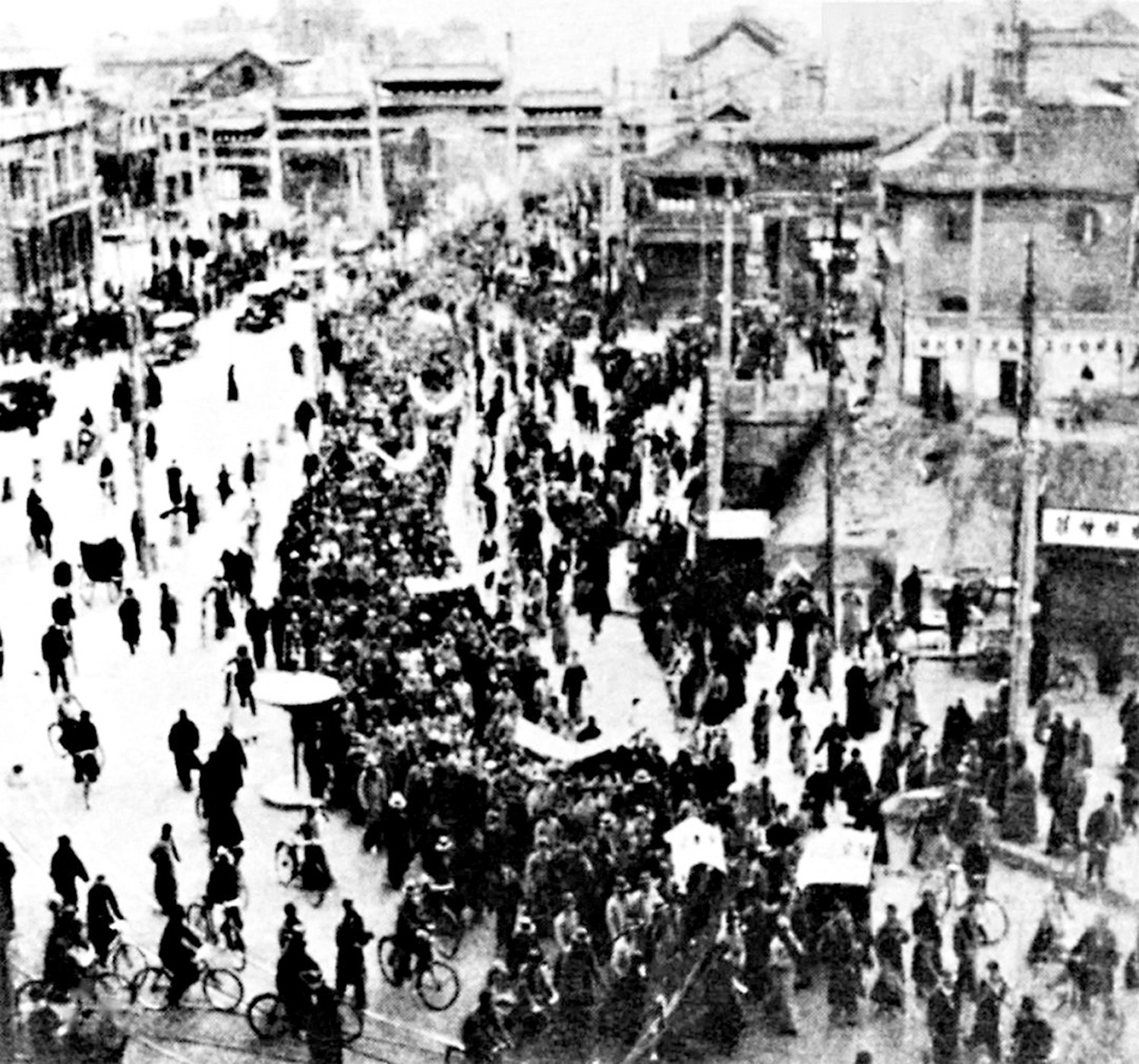日本侵略者在侵佔東北後,加緊了對華北的爭奪。1935年6月中旬,在日本脅迫下,國民黨「中央軍」撤出平津和河北,整個華北危在旦夕。北平學生悲憤地喊出:「華北之大,已經安放不得一張平靜的書桌了!」12月9日舉行聲勢浩大的抗日遊行,遭到國民黨軍警鎮壓,由此始的一二·九運動迅速波及全國。