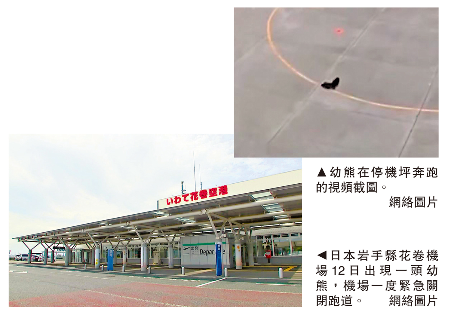 【大公報訊】綜合共同社、日本放送協會(NHK)報道:日本熊患頻傳,重災區岩手縣的花卷機場12日出現一頭幼熊,機場一度緊急關閉跑道,部分航班延誤。