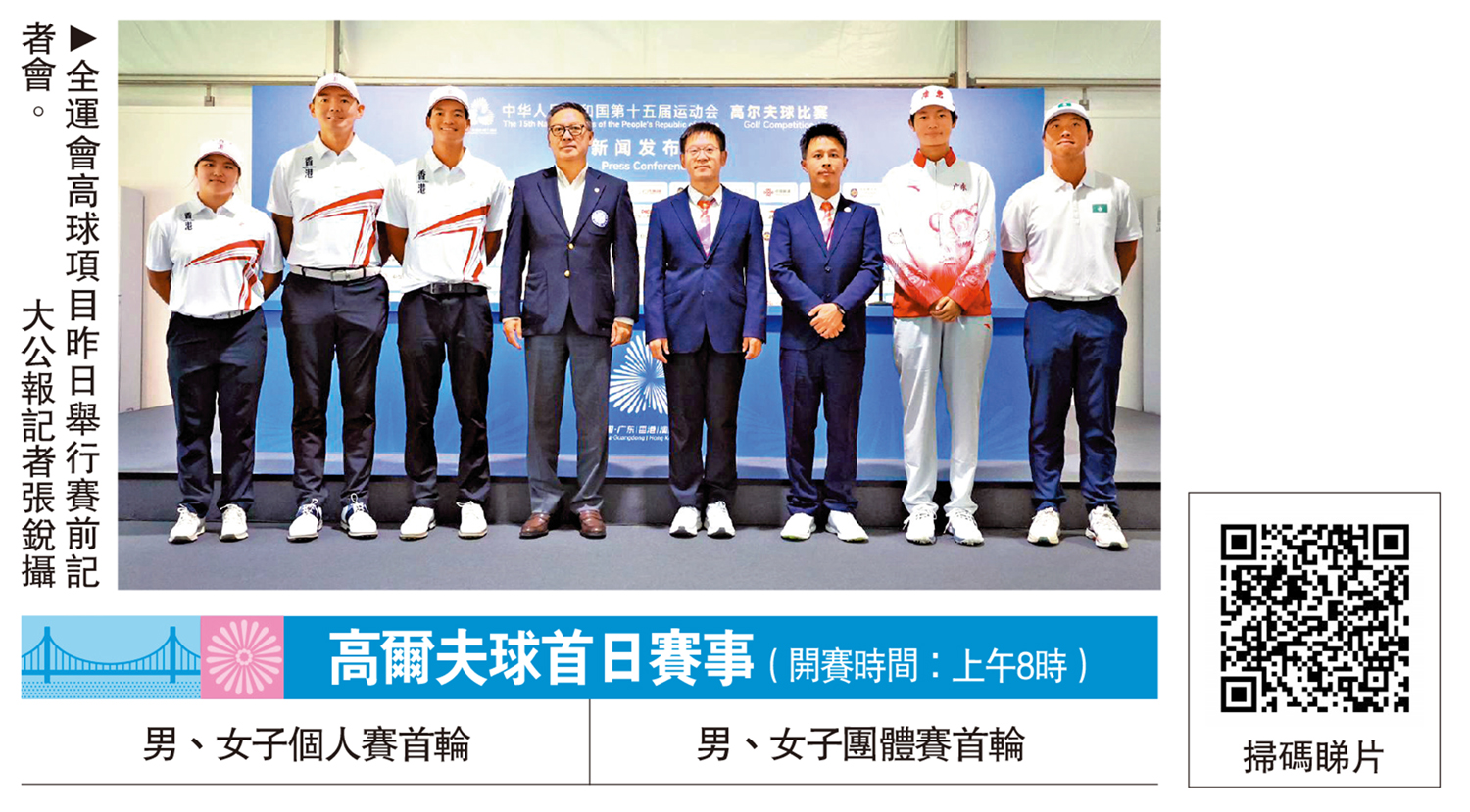 【大公報訊】記者張銳報道:第15屆全運會高爾夫球項目將於今日(13日)至本周日在香港粉嶺高爾夫球場「揮桿」。中國高爾夫球協會秘書長韋慶峰與中國香港高爾夫球協會行政總裁賴以尊、還有數名運動員昨天在賽前記者會上分享籌備進度。各方均對賽事順利舉行充滿信心,並期待透過全運平台推動高球運動發展。韋慶峰表示,賽事籌備已「萬事俱備」,並特別安排香港運動員於開球儀式上揮出第一桿,展現主場特色。