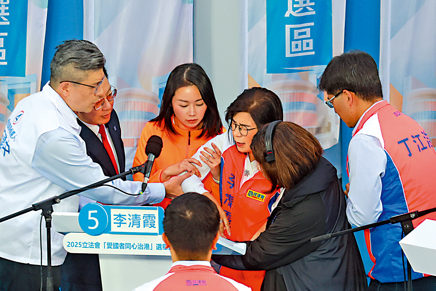 香港島東地方選區論壇昨日同時上演「良性競爭」與「人文關懷」的暖心一幕。論壇甫開始,各候選人順序介紹政綱,5號候選人李清霞在講到勞工議題時突然身體不適暈倒。令人感動的是,她的競爭對手們第一時間展現關懷,立即上前慰問並主動協助攙扶,充分體現出「競爭中有尊重、選舉中有溫度」的可貴精神。