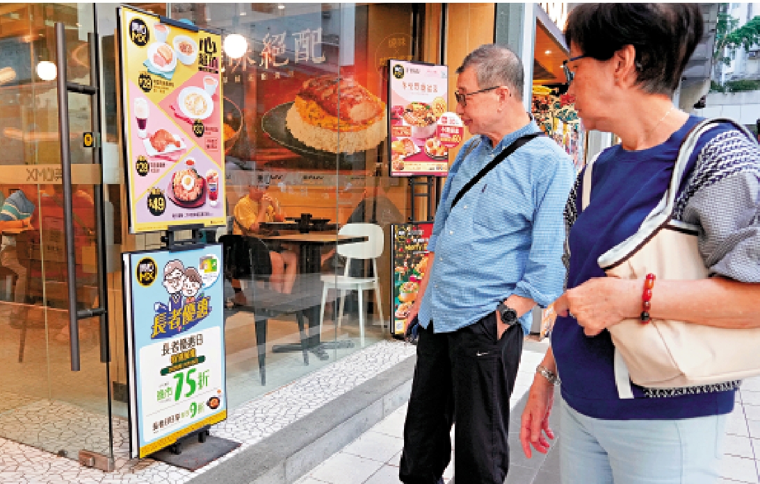 有食肆負責人表示,昨日特意準備優惠餐,吸引不少「老友記」幫襯,佔總客流約一成半,大家都說吃得開心。有藥房負責人表示,長者日提供優惠,令客流明顯增長,較平日增近萬元生意額。\大公報記者 易曉彤、肖泓宇