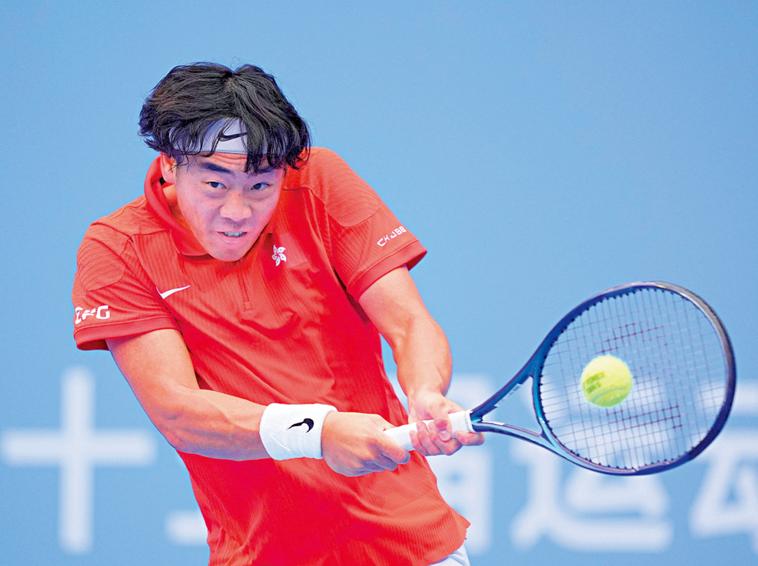 【大公報訊】記者梁潤森報道:全運會網球項目17日繼續在橫琴國際網球中心舉行,香港網球隊「一哥」黃澤林繼續雙線出擊,先於上午出戰男單16強賽,面對廣東隊的曾姚傑,黃澤林僅耗時77分鐘便以盤數2:0晉級;隨後,黃澤林夥拍黃俊鏗出戰男雙8強賽,對陣江蘇隊組合唐盛/孫淺,最終黃澤林/黃俊鏗以0:2落敗,無緣4強。