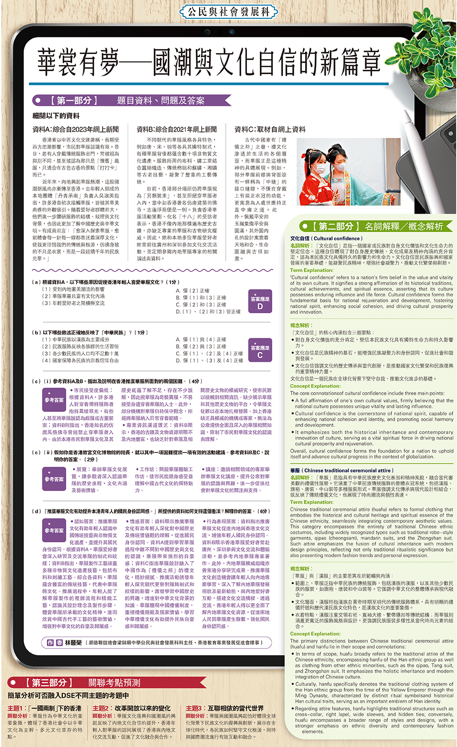 (d)「推廣華服文化有助提升本港青年人的國民身份認同感。」所提供的資料如何支持這個看法?解釋你的答案。(6分)