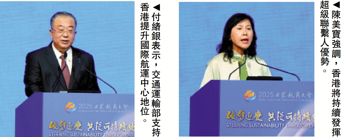 她強調,香港將持續發揮超級聯繫人優勢,攜手各方引領航運業邁向更智能、更綠色的未來。
