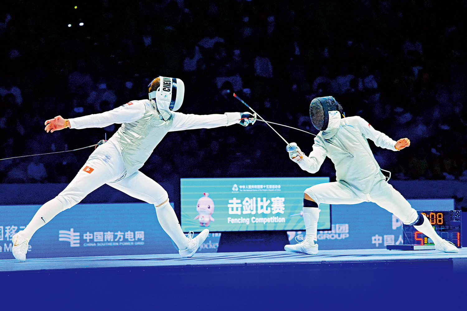 花劍男子團體賽規則為每隊有4位選手,派出3位輪流出賽。比賽共分9場,每場3分鐘,每場先擊中5劍者獲勝,若3分鐘內雙方都未達到5劍,則以擊中劍數較多者獲勝。總分達到45分的一方獲勝。此外,花劍的攻擊優先權規則也適用於團體賽,即先出劍攻擊並擊中得分,被攻擊方必須有效格擋後才能反攻得分。