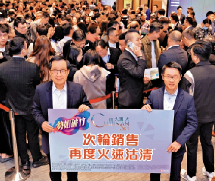 天璽·天2期繼上周六首輪推售的62伙即日沽清後,昨日次輪推售的56伙,續在搶貨潮延續下即日沽清。據成交紀錄冊顯示,成交價介乎680.77萬元至1026.26萬元,單日套現逾4.423億元。項目於5日內或僅兩個銷售日,消化118伙,連同招標該期數一個月速沽155伙,套現逾28.28億元。