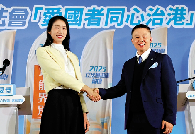 2025立法會「愛國者同心治港」功能界別旅遊界選舉論壇昨日下午舉行,兩名候選人為M1號江旻憓及M2號馬軼超。作為巴黎奧運金牌得主的江旻憓表示,想把奧運冠軍所帶來的影響力,轉化為建設香港的力量,坦言她現時缺乏業界經驗,但會用比賽「追落後」心態轉型。馬軼超強調會從自身專業經驗出發,向國際旅客系統性介紹香港優勢。突顯香港「半小時生活圈」特色,從都市繁華到自然景區的無縫銜接旅遊優勢。\大公文匯全媒體 吳健怡
