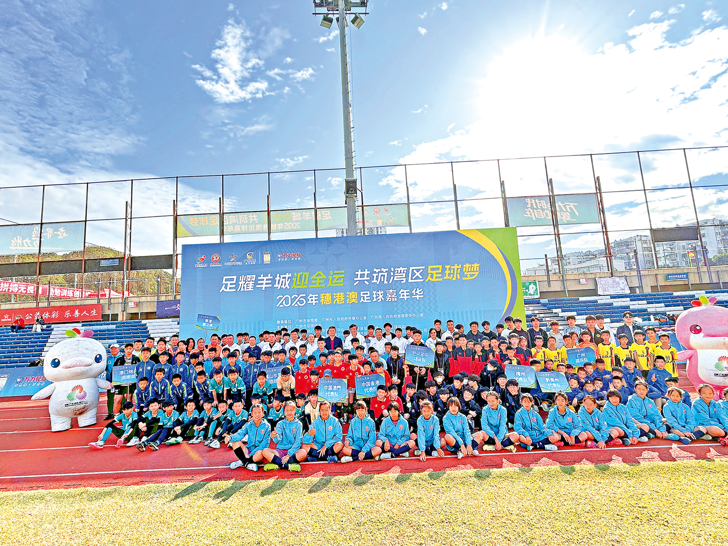 【大公報訊】記者敖敏輝廣州報道:22日,「足耀羊城迎全運 共築灣區足球夢·2025年穗港澳足球嘉年華」在廣州開幕,來自香港、澳門、佛山、梅州、黔南州、韓國光州和廣州本土的多支足球隊伍,在為期三天的活動中開展足球培訓、足球交流賽、遊戲互動、文化研學等活動,推動足球競技與文化交流合作。