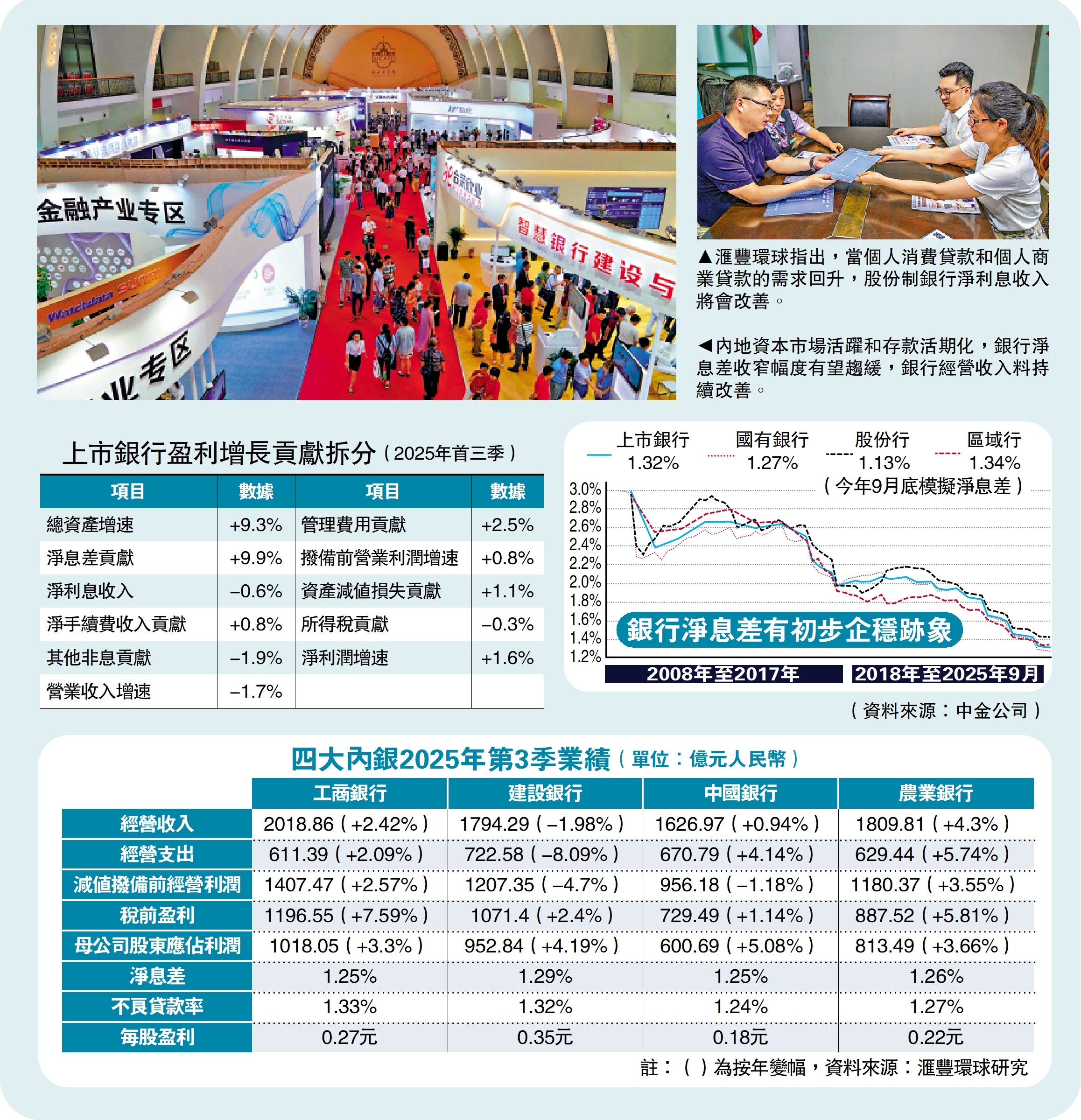 在2025年第4季和2026上半年,滙豐環球投資研究預期大型內銀的淨利息收入有望持續跑贏股份制銀行,直至個人消費貸款和個人商業貸款的需求回升為止。