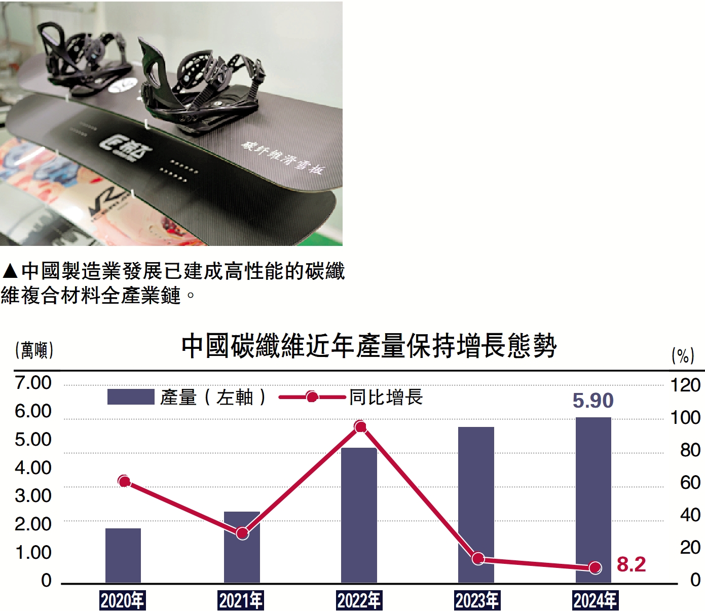 碳纖維是指含碳量90%以上的高強度、高模量纖維,被譽為「輕量化材料之王」,廣泛應用於汽車、航空、醫療及衞生保健、體育等產業。碳纖維就像絲線,人們把絲線編織成布,把布匹放在樹脂或者陶瓷等材料中固定,組成各種形狀,從而擁有各種物理特性。碳纖維的密度通常為1.5g/cm3(克/立方公分),遠小於同體積的玻璃纖維複合材料、結構鋼及鋁合金。故此,碳纖維複合材料具有優越的物理性能,耐高溫、耐腐蝕,且品質輕、強度高,為現代產業不可或缺之元素。