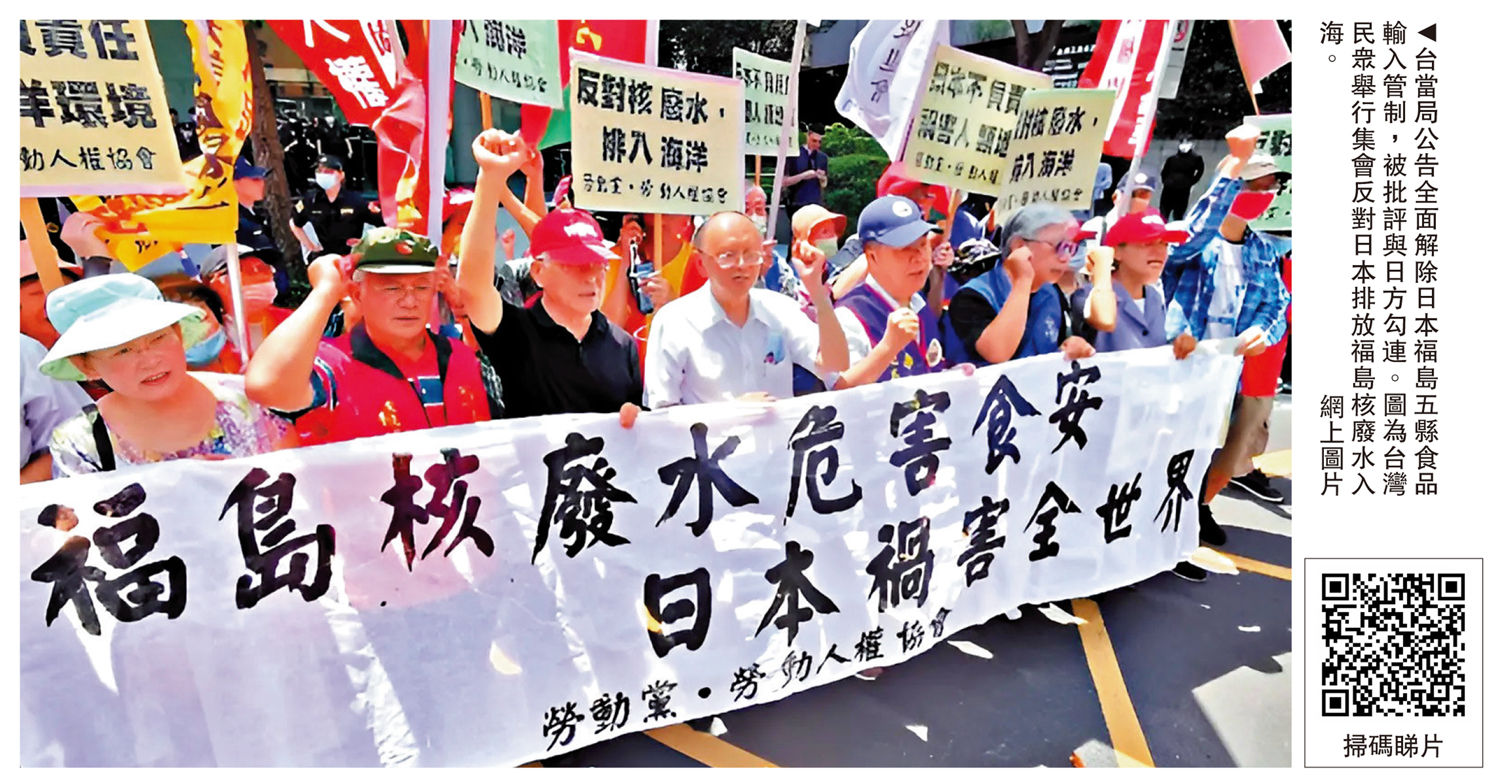 【大公報訊】綜合中通社、台媒報道:2011年3月11日,日本大地震導致福島第一核電站發生核洩漏事故。台灣自同年3月25日起暫停福島、茨城、栃木、群馬、千葉五縣除酒類以外的所有飲食產品輸入。2022年2月,台當局放寬了這一管制,但仍對前述五縣出產的野生鳥獸肉類食品、菌類食品等實施禁令。