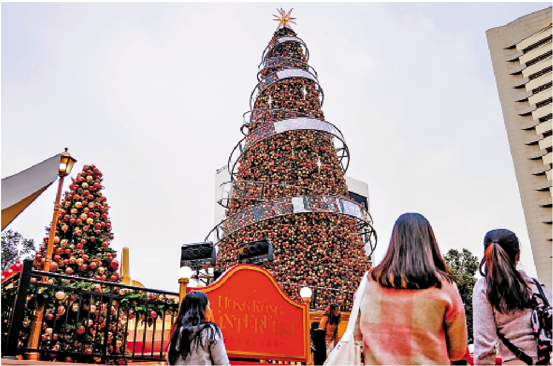 聖誕佳節臨近,香港皇后像廣場已布置了琳琅滿目的聖誕裝置,瀰漫着濃厚的節日氛圍,為市民和遊客提供打卡熱點。\香港中通社