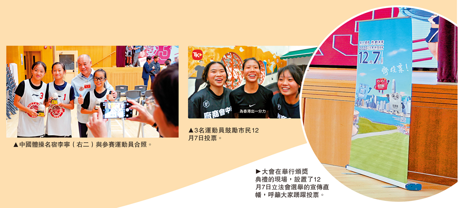另外,有參加三人籃球賽的同學表示:「立法會選舉關乎你我生活,記得在12月7日投票。」亦有同學表示:「不要錯過12月7日的投票機會,你一票,我一票,大家齊為香港出一分力。」\大公報記者朱家立