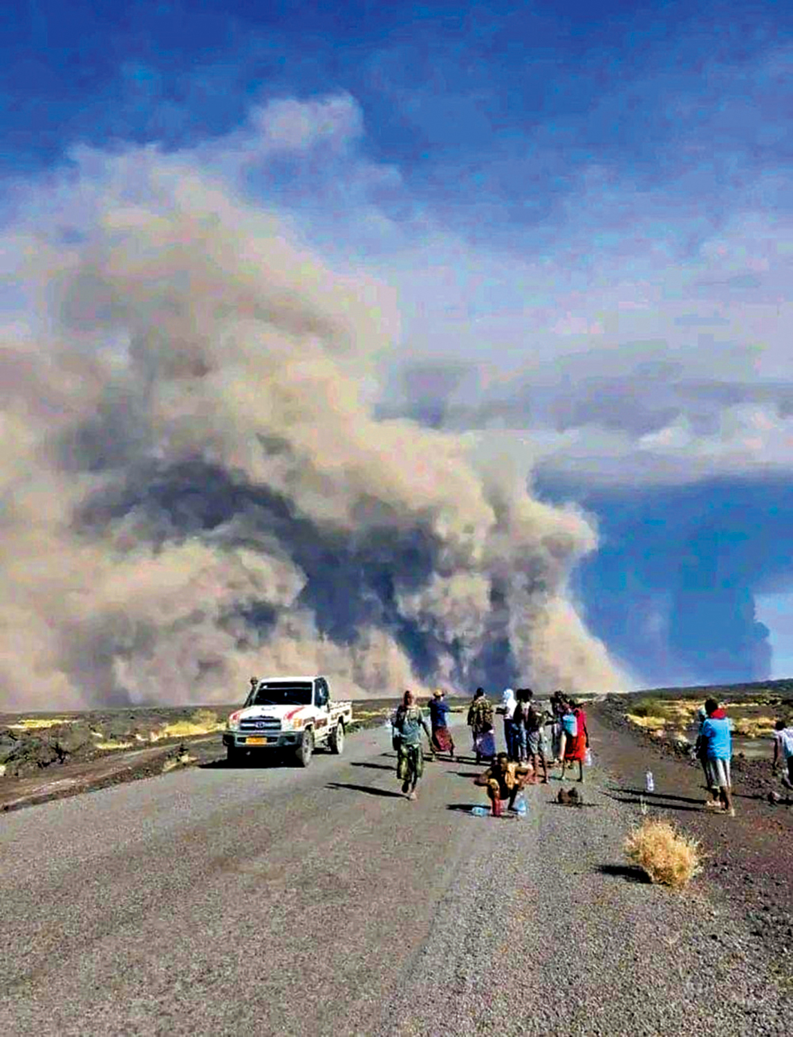 另外,當地時間23日上午,非洲埃塞俄比亞東北部的海利古比火山在沉寂近1.2萬年後首度噴發,未造成人員傷亡。火山噴發持續數小時,煙柱高達14公里。大量火山灰雲已飄至也門、阿曼、印度和巴基斯坦北部。印度境內多趟航班被迫取消、延誤或改道。