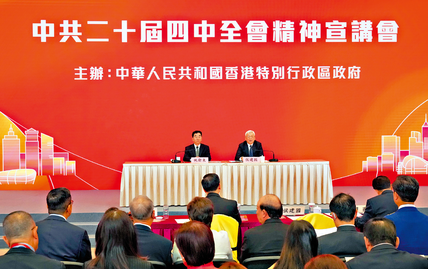 中央宣講團成員,中央財經委員會辦公室副主任、中央農村工作領導小組辦公室副主任祝衛東圍繞全會的重大意義、「十五五」時期國家經濟社會發展形勢任務、指導方針和主要目標作出解讀。他表示,國家「十五五」規劃的編制與實施將為香港注入強勁發展動能,香港應更好融入和服務國家發展大局,參與粵港澳大灣區建設等國家戰略。