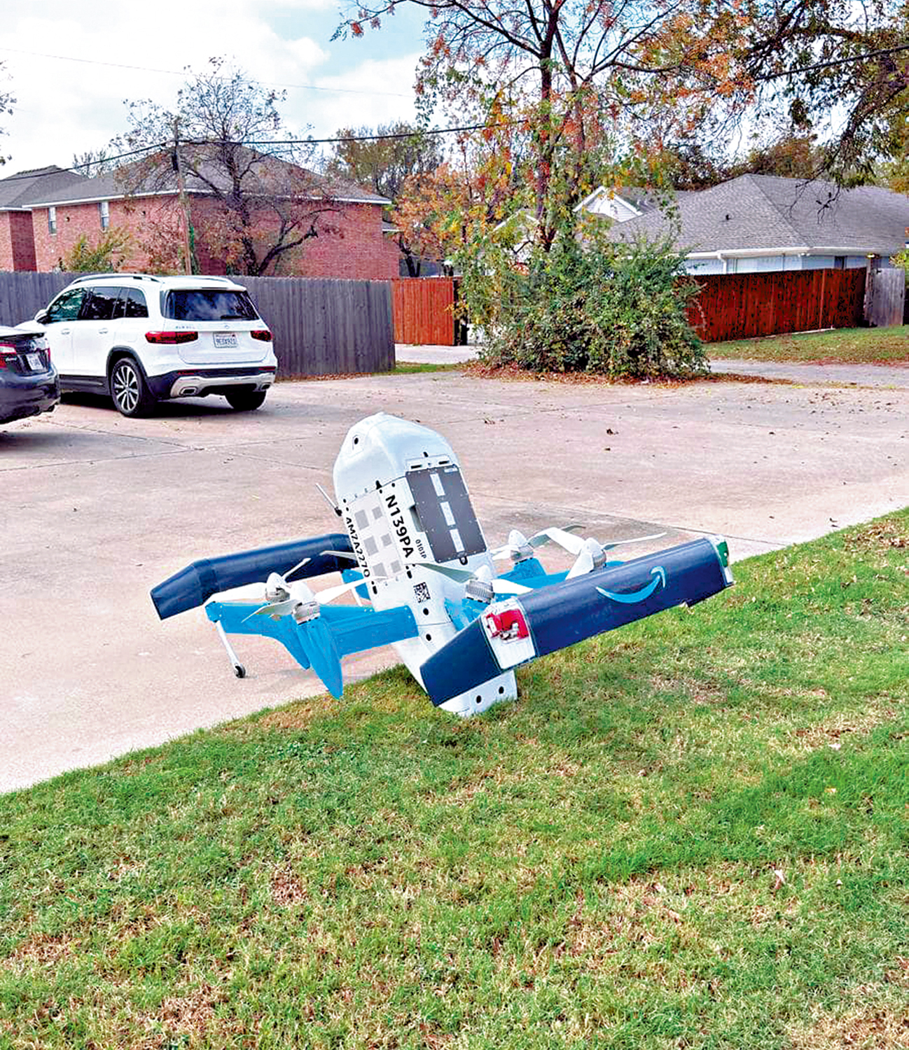 【大公報訊】這起最新事故發生在得州中部的韋科市。當地時間11月18日中午12時45分左右,亞馬遜一架MK30送貨無人機在完成投遞、從客戶院內起飛時,其中一個螺旋槳纏上住宅附近的網絡電纜。視頻畫面顯示,無人機被一條橫穿空中的細纜線纏住,導致纜線被扯斷,並觸發無人機自動停機墜地,螺旋槳輕微受損。FAA確認介入調查事件,美國國家運輸安全委員會(NTSB)則對此表示「關注」。