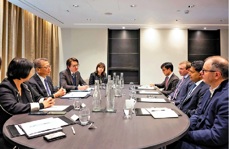 【大公報訊】財政司司長陳茂波在倫敦時間11月25日抵達英國倫敦並展開訪問,他與多家來自歐洲、中東和亞洲的家族辦公室的代表會面,向他們介紹香港在金融和創科方面的投資機遇、慈善和影響力投資的生態,以及優質的生活環境等,歡迎他們來港設立辦公室。陳茂波指出,香港與英國之間在過去一年在經貿、投資及文化等領域交流頻繁,雙邊貿易持續增長,雙向投資活躍。
