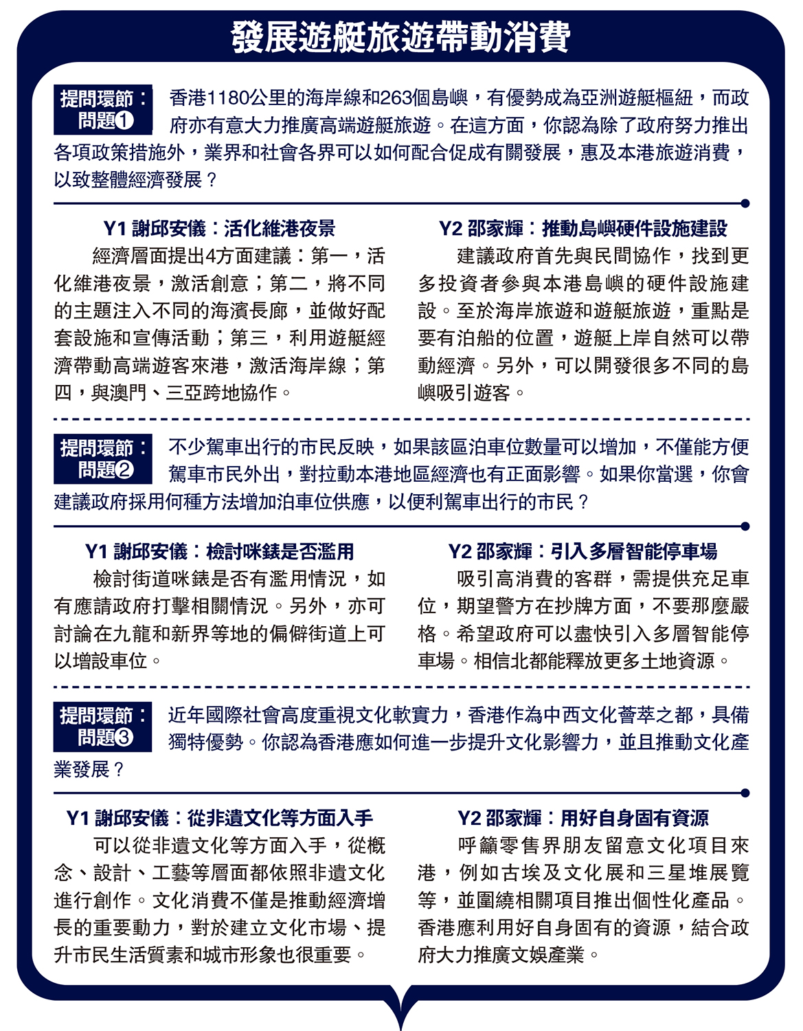 香港1180公里的海岸線和263個島嶼,有優勢成為亞洲遊艇樞紐,而政府亦有意大力推廣高端遊艇旅遊。在這方面,你認為除了政府努力推出各項政策措施外,業界和社會各界可以如何配合促成有關發展,惠及本港旅遊消費,以致整體經濟發展?