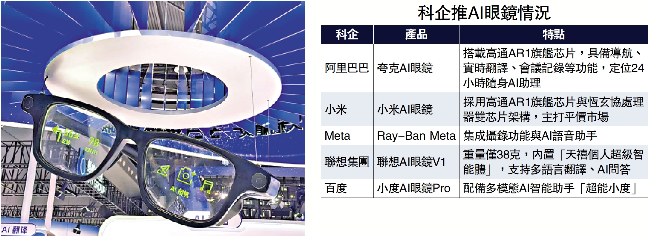 目前,Meta憑藉Ray-Ban智能眼鏡與VR頭戴裝置在全球市場居主導地位,而蘋果、三星、小米(01810)及百度(09888)等企業也紛紛布局AI眼鏡或同類產品,競爭態勢日益明顯。