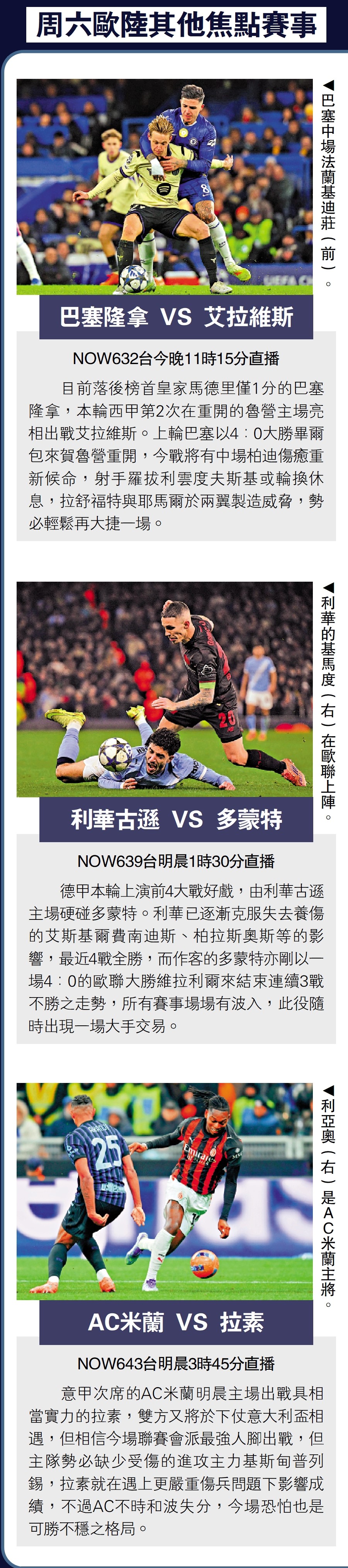 意甲次席的AC米蘭明晨主場出戰具相當實力的拉素,雙方又將於下仗意大利盃相遇,但相信今場聯賽會派最強人腳出戰,但主隊勢必缺少受傷的進攻主力基斯甸普列錫,拉素就在遇上更嚴重傷兵問題下影響成績,不過AC不時和波失分,今場恐怕也是可勝不穩之格局。