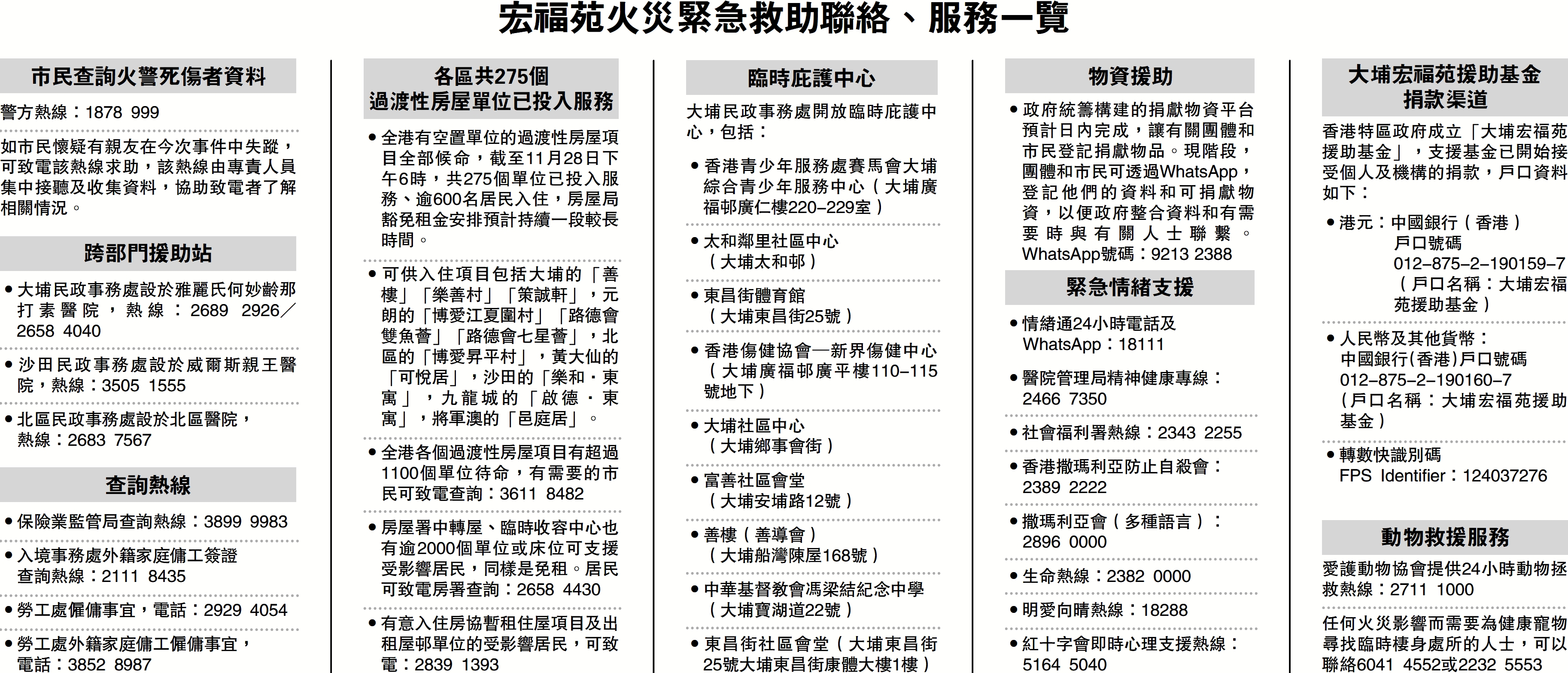 香港特區政府成立「大埔宏福苑援助基金」,支援基金已開始接受個人及機構的捐款,戶口資料如下: